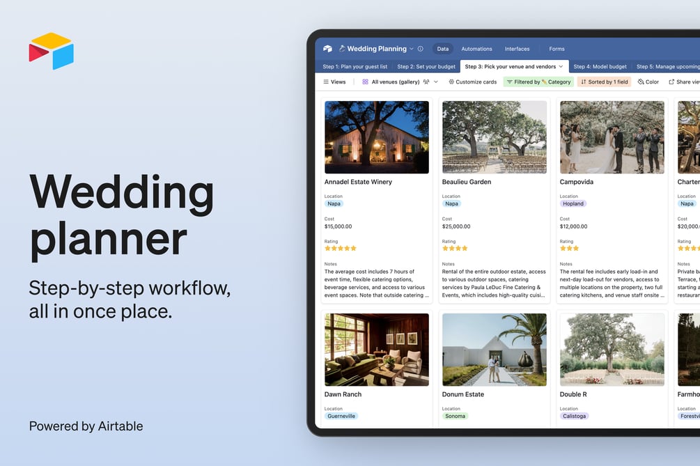 Powered by Airtable, this template automatically connects workflows, eliminating repetitive tasks and simplifying your planning process. No expertise required—it’s as easy to use as Google Sheets but more powerful. An Airtable account is required but is free to use.
